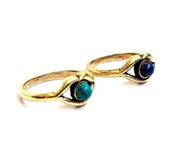 Gran oferta hecha a mano, anillo de piedras preciosas de latón con ajuste de bisel de estilo bohemio para mujer con chapado en oro y piedras de turquesa/lapislázuli
