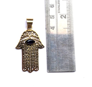 Precio al por mayor estilo bohemio latón Hamsa piedra colgante negro ónix colgante con bisel ajuste joyería