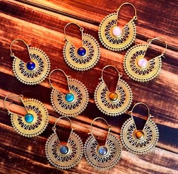 Pendientes de aro de piedras naturales de latón hechos a mano estilo bohemio boda compromiso fiesta regalo