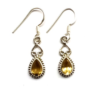 Pendientes colgantes con diseño de gancho en forma de pera, venta al por mayor india, pendientes de citrino de plata esterlina hechos a mano para mujer, fiesta, boda