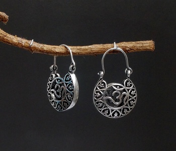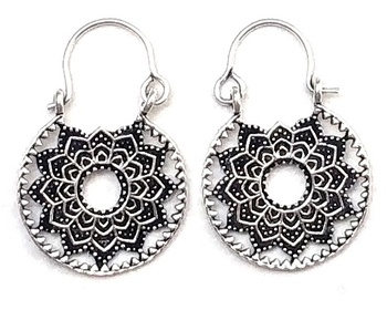 Pendientes de aro redondos chapados en plata Bohemia étnica Om para mujeres y niñas