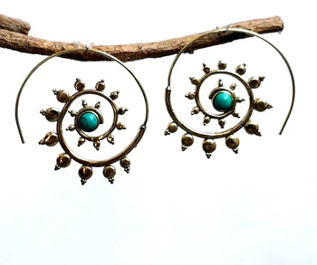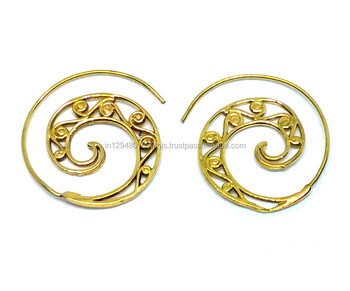 Pendientes de plata en espiral grandes, joyería de latón, fabricación india, venta al por mayor