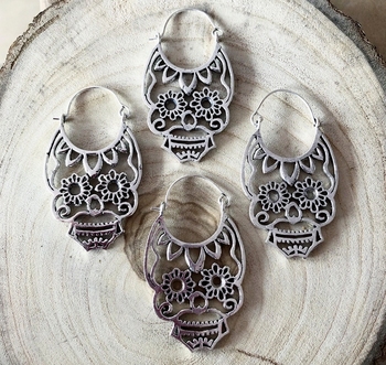 Pendientes de aro de plata con forma de calavera para mujer, joyería Vintage, para amigos, regalos de Halloween