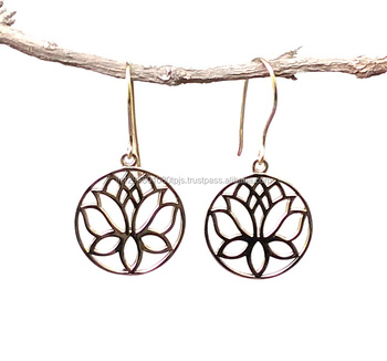 Pendientes colgantes de loto de latón hechos a mano de alta calidad para mujer